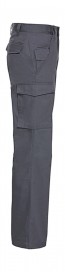 ·245 g/m² ·65% Polyester, 35% Baumwolle (Twill) ·Elastischer Taillenbund für bequemen Sitz ·Modisches Design ·Gesäßtaschen mit Patten, Handytasche, Cargotasche am rechten Bein.