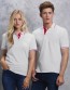 ·210 g/m² ·100% Baumwolle, gekämmtes Piqué ·Kragen und Ärmelbündchen aus Rippstrick mit Kontraststreifen ·Nackenband in Kontrastfarbe ·Sattel im Nacken ·Kontrastfarbene 3er-Knopfleiste ·Gerader Bund ·Seitenschlitze mit kontrastfarbenem Fischgrätband verstärkt ·Doppelnähte überall.